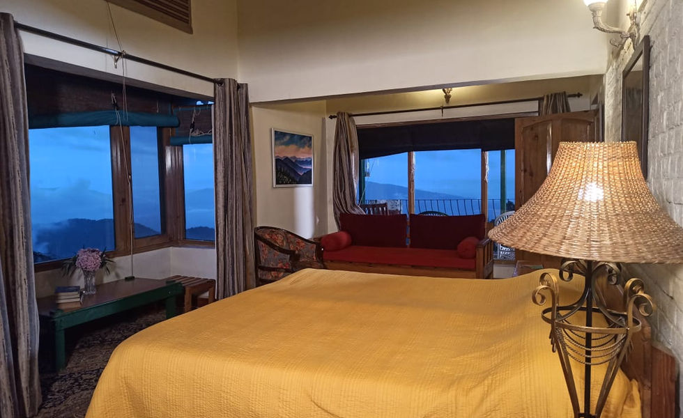 Indulge in the ultimate retreat in our luxurious Pine Room, renowned as the crown jewel of Rose Cottage. Spanning 400 square feet, this room exudes rustic elegance with its pine-themed décor and rich wooden accents. Accommodating 3-4 guests, it offers a convertible king bed, ensuring a restful night's sleep amid panoramic views of the snowcapped mountains from your private balcony. Unwind in the spacious attached bathroom, or catch up on work in the separate seating area complete with a functional work desk. Experience unparalleled comfort and serenity in the Pine Room, where every detail is designed to elevate your stay to new heights.